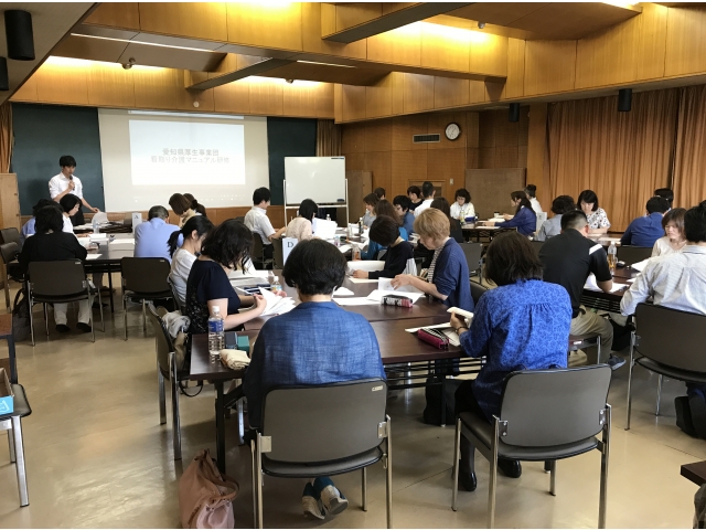 お一人の人生最期の支援となる、看取り介護。ご本人やご家族の思いを受け止め、職員も悔いのない支援をしていけるように、皆さん真剣に説明を聞かれていました。