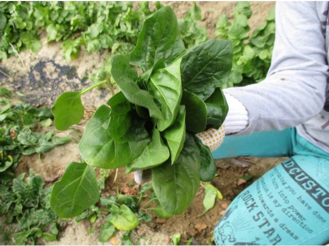 今日は、中庭にある畑で、ほうれん草を収穫しました。ならわ農園クラブの皆が