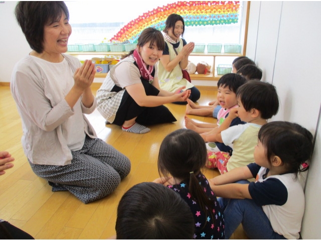 今日は、わらべうた指導の高橋先生に来ていただいてわらべうたで遊びました。その様子をご紹介します。