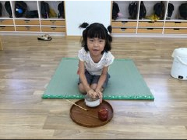 2週間程なつめや茶杓を使い練習してきたお点前。緊張しながらも丁寧にお一人お一人に心を込めてお点前をすることができ「ありがとう」と言ってもらうと喜ぶかわいらしい姿が印象的でした。