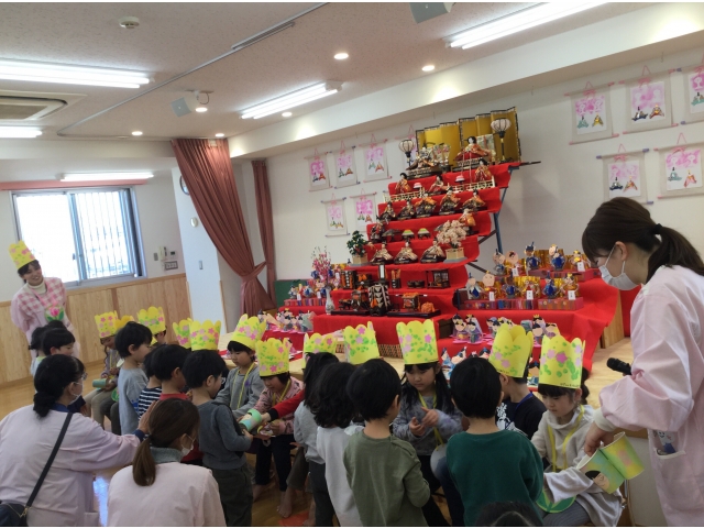 ひな祭りの時期も近いので、各クラスでおひな様を作りました