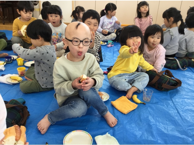 3月3日(火)にお別れ遠足へ行く予定をしていましたが、コロナウイルス感染予防のため、園内でお別れ遠足ごっこを行いました。