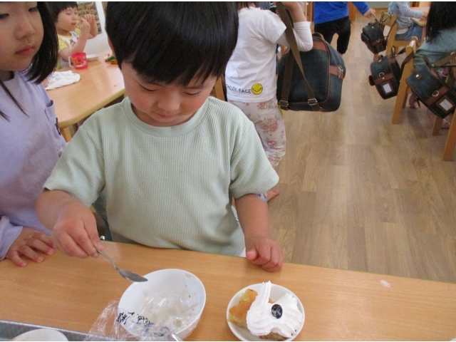 おやつも行事にちなんだこいのぼりケーキを食べました。