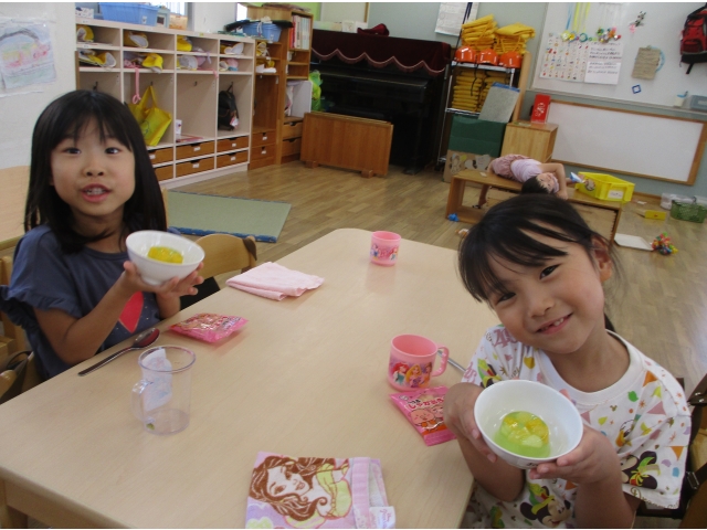 9月20日(金)、2歳児~5歳児のお友だちでゼリー作りをしました。