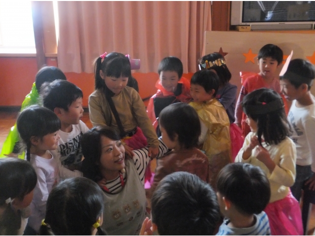 10月28日に子どもたちは自分たちで製作したお面や服で仮装して楽しみました!!