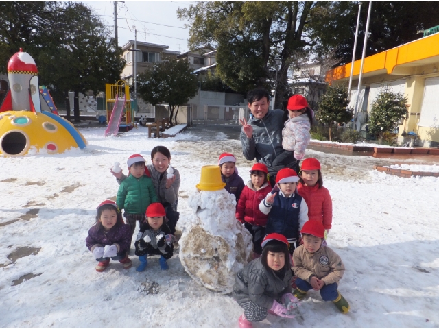 大きな雪だるまや小さな雪だるまをつくったり、