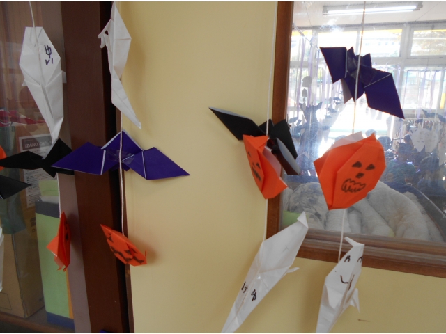 今日はハロウィン。大きなかぼちゃも飾りました。