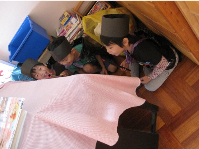 変装したぞう組さんが、ぞう組の部屋でみんなを驚かせます。