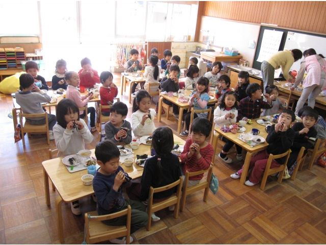 「おもちゃがたくさんもらえますように…」「探検家になれますように」「長生きできますように…」と一人ひとり願いを込めて食べました。