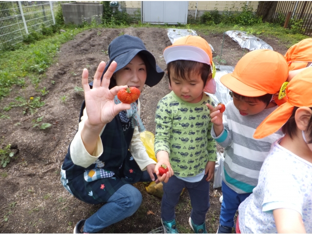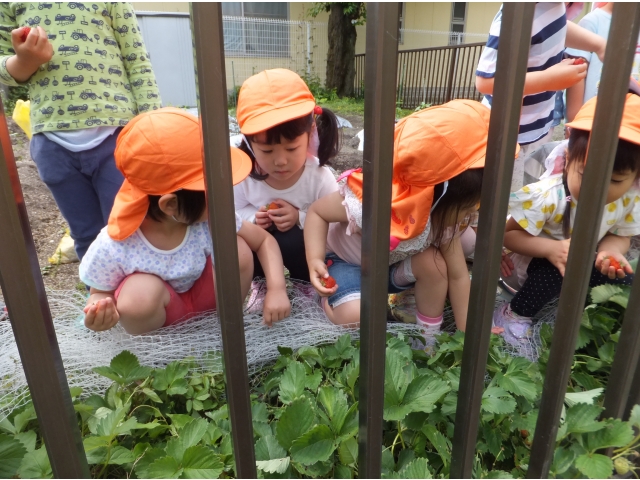 その前に食べた年長児は「あんまりおいしくなかった…」と言っていたので、いちごにも当たり外れがあるみたいです(笑)