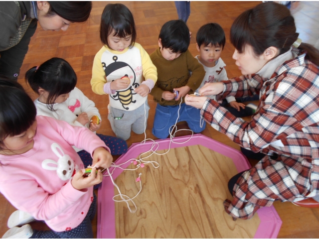 3歳児の始まり。5つのグループに分かれて教えてもらいます。