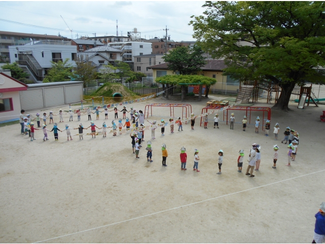 クラスごとに円を作って、こいのぼりのうたを歌ったり、元気よく体操をしたりしました。