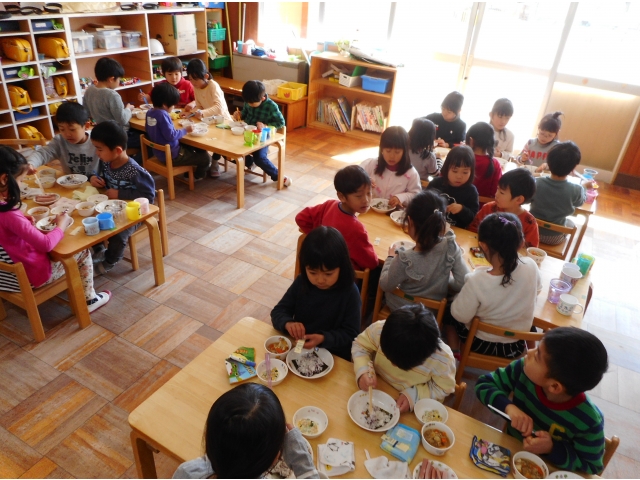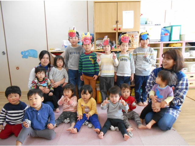 もうすぐ節分! 少し早いのですが園で豆まきをしました。