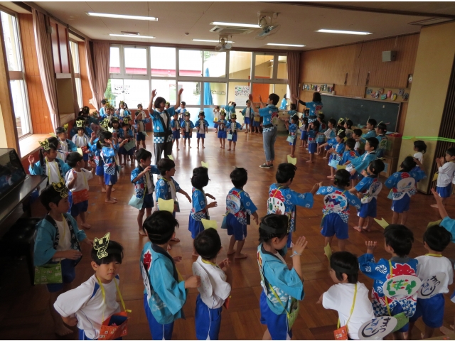 みんなで盆踊りを踊ました。今年は東京五輪音頭2020です。