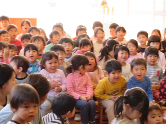正月に昔の人はどんなあそびをして過ごしていたかを、密かに練習を重ねた職員が、子どもたちに紹介しました。