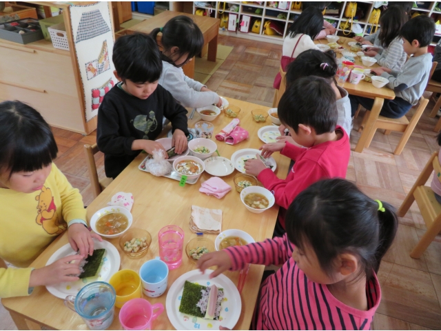 自分の中のオニを追い出した後はみんなで恵方巻を作って食べました。
