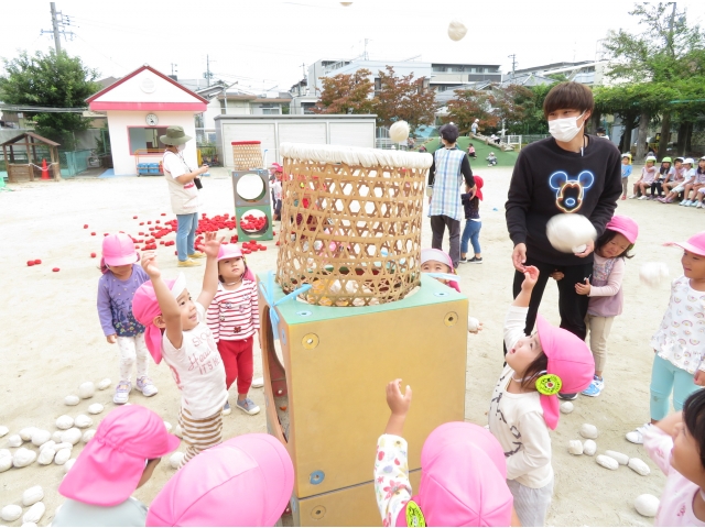 大玉ころがしでは、ちゅうりっぷさんに負けてしまったけど、玉入れでは勝つことができ、大喜びしていた子どもたちでした。