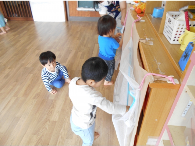 先日運動会ごっこで玉入れに挑戦!ひろってカゴにいれてを楽しんでました。