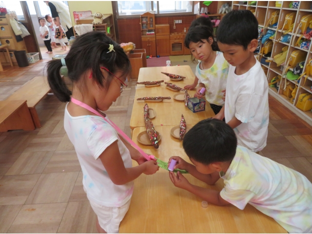 ぞう組、きりん組のお友だちがお客さんとお店屋さんに分かれて、交代で楽しみました♡