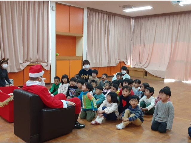 遊戯室に入った瞬間にサンタさんがいてみんなびっくり!