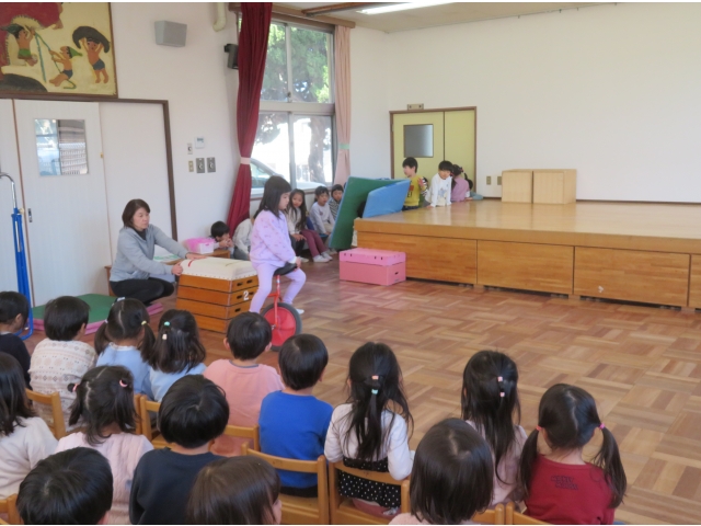 - 園長先生からのお祝いの言葉を真剣に聞きます!