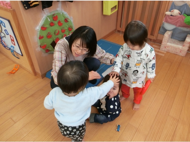 少しづつ言葉も出てきており、その分、自分の思いもしっかりと主張するようになっています。玩具の取り合いや、思いのぶつかり合いから、友だちと喧嘩をする姿も多くなり、保育室はいつも活気に満ち溢れていますよ(#^^#)