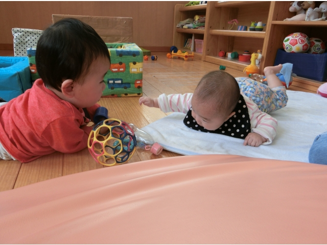 新年度がスタートしました。今年度は3人でのスタートです。初めての保育園、初めての保育室、初めて出会う保育者等々、子ども達にとっては初めて尽くしですが、どの子どもも最初から泣くこともなく、すっかり園になじんでいます!