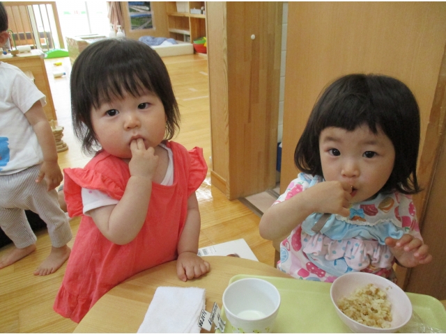 子ども達は園生活にも慣れ、友だちと触れあってみたり、一緒に遊んでみたり、また、自己主張をたくさんするようになり、いろいろな思いを保育者や友だちに、一人ひとりの伝え方で知らせてくれるようになりました!(^^)!