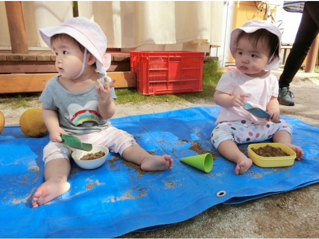 10月も暑い日が続いていましたが、台風が過ぎると、急に過ごしやすい気候になりました。ひよこ組の子どもたちは、心地よい季節の中、園庭で砂遊びをしたり、動き回ったりと活発に遊んでいます!もちろん、部屋の中でも、ボールプールで泳いだり、一本橋を手をつないで歩いたりと、出来ることがたくさん増えてきて、楽しみ方も広がっています!