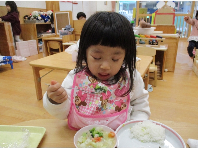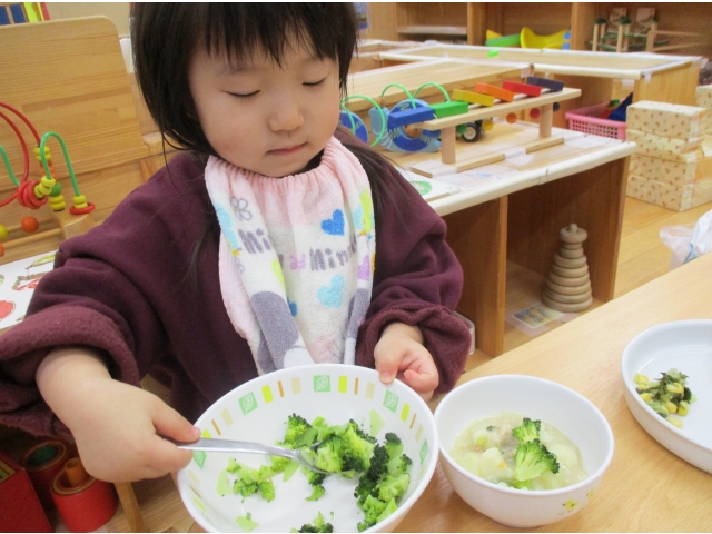 ブロッコリーが苦手な子も、自分で盛りつけたことにより、今日は、完食する子が殆どでした!(^^)!