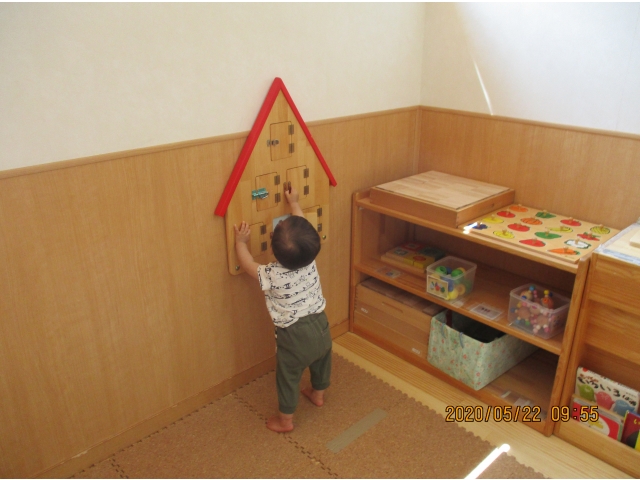コロナウイルスの対策として常におもちゃを清潔にし、こまめな換気、ドアノブ消毒などの感染予防を行い保育園で安心して過ごせるように努めています。