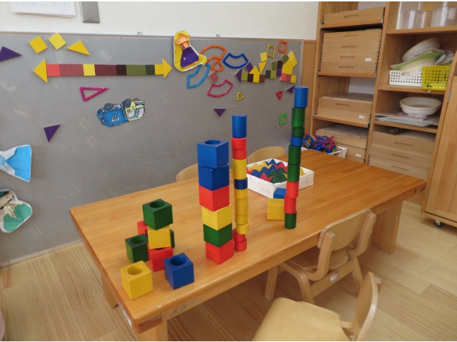 集中して一人でどんどん積んでみたり、保育士と一緒に