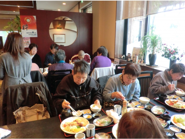 今日、10月の社会見学(岡崎城、カクキュー)に参加しなかった利用者の為の買い物・食事会がありました。食事処のマイクロバスのお迎えで出発し食事処に近いショッピングセンターで買い物をしました。予め買いたい物を決めて計画的に買い物をしていました。食事処では刺身、海老フライ等がついた和定食を頂きました。ボリュームに美味しさに大満足でした。