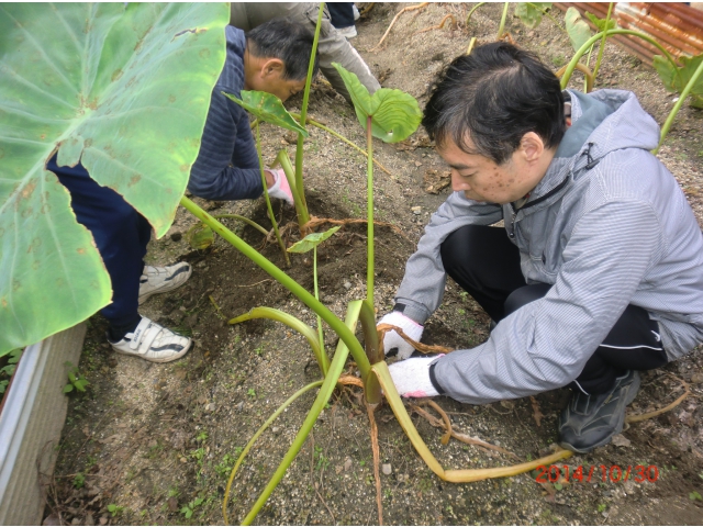 さて、秋と言えば食欲の秋!ということで10月30日(木)に明知寮内の農場で芋掘りをしました。みんなで育てたサトイモやサツマイモがついに収穫の時を迎えました!