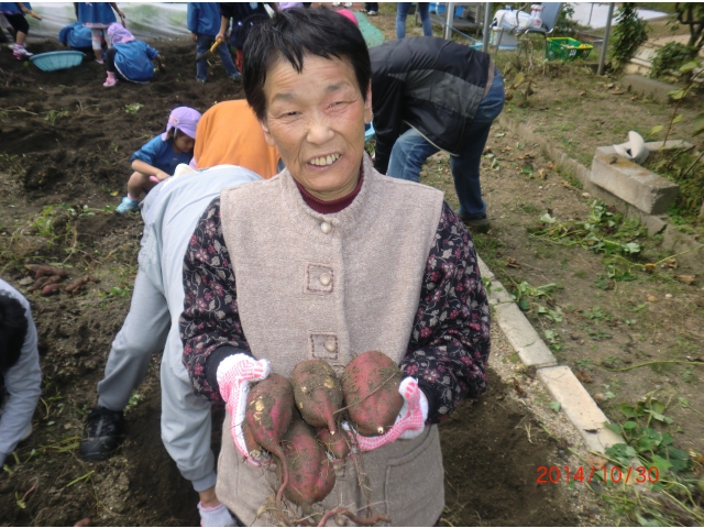 芋掘りには坂下北保育園の園児さんも招き、一緒に楽しく芋掘りをしました。