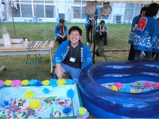 毎年恒例のアイスにジュース、たこ焼き、たい焼きの屋台に加え、今年は魚釣りゲームを新しくやりました。