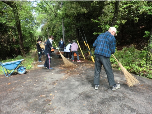そこで、落ち葉の清掃をしてくださる利用者様を募り、支援員と清掃を行うことにしました。