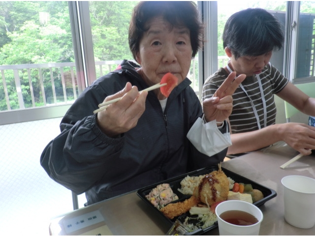 皆さんお楽しみの昼食は、明知寮名物の自家製弁当!