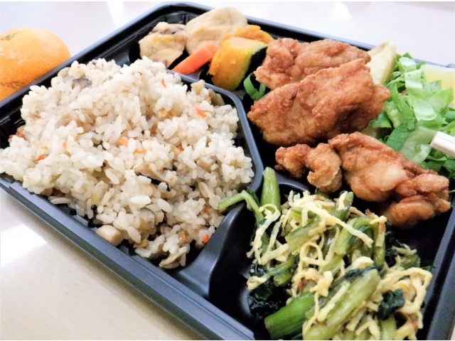 厨房で手作りし、職員が心を込めて詰めた唐揚げ弁当はとってもボリューミー&ジューシーで大好評でした。