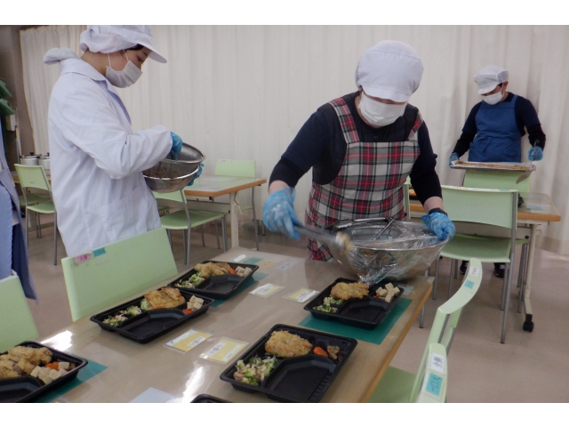 今回は、栄養士実習生にもお弁当詰めを手伝っていただきました。