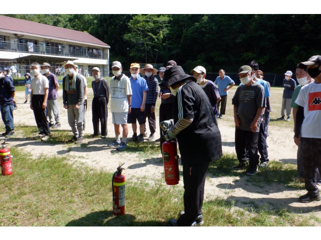 6月12日に、グラウンドにて防災訓練を実施しました。今回は水消火器による消火訓練です。 まずは次長から説明があり、その後職員が見本を見せました。