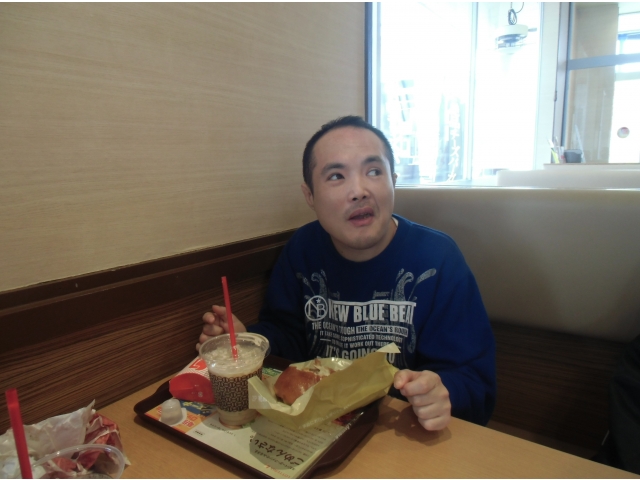 まずは、ロッテリアでハンバーガーセットを飲食し、
