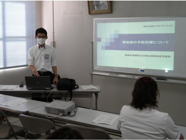 10月29日(木)職場研修が行われました。テーマは「感染症について」で、岡崎市保健所の望月真吾氏を講師に「お招きしました。