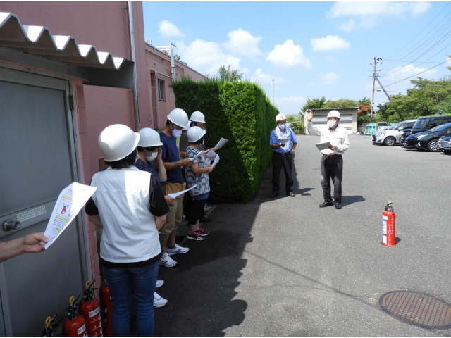 火災においては初期消火が重要です。消火器及び消火用散水栓の操作を迅速的確に行えるように藤川の里の駐車場で消火訓練を実施しました。