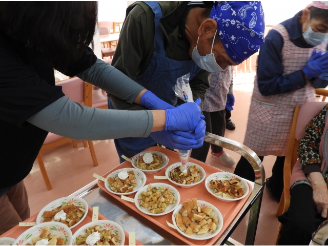 クッキングクラブのメンバー(利用者さん)が上手にトッピングをしてくれて、皆さん大喜びでした。