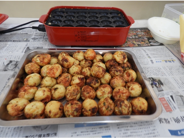 たこ焼き器2台をフル稼働で、利用者さん全員分のたこ焼きを焼き上げました。中身はチーズに明太子・・・タコは入っていないですが、そこは色々な理由がありますので、ご愛嬌ということで🐙
