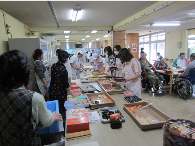 お寿司屋さんに来て頂き、寿司バイキングを行いました。おかわりの声があちこちから聞こえていました。利用者さんの人気のねたは“まぐろ・鯛”でした。
