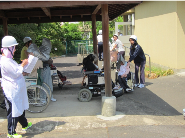防災訓練当日は、30?を超える暑い日になりましたが、利用者さん・職員一体となって行動する事が出来ました。