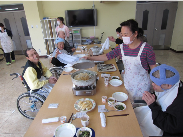 鍋料理で利用者様に喜んで頂き、職員の心もポッカポッカになりました。