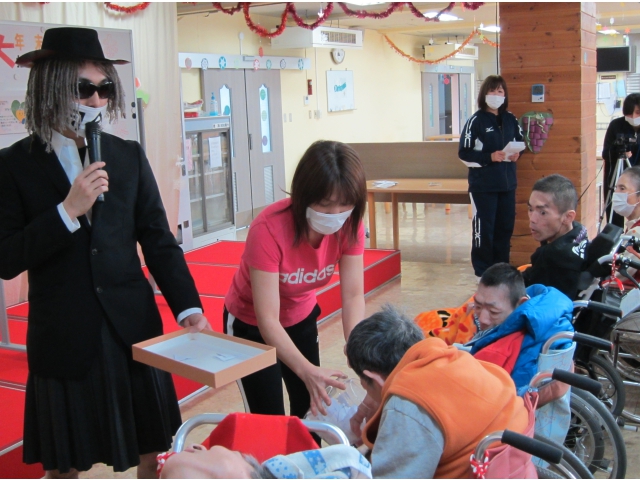 二人羽織では、新人職員を中心に体を張った「共同芸」を利用者様に披露し、爆笑と喝采の中、一年の締めくくりを終了しました。